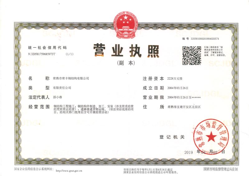 常熟市常豐鋼結構有限公司,位于風景秀麗的常熟市支塘鎮(204國道旁)毗領蘇嘉杭高速公路,水陸交通十分便利。 本公司成立于2001年,是承接重鋼、輕鋼,景觀鋼構,鋼管桁條,網架、彩鋼板專業(yè)制作、安裝一體的企業(yè),并取得國家建設部頒發(fā)的鋼結構專業(yè)承包安裝二級資質,是蘇州地區(qū)具有較高的知名度和較高競爭企業(yè)。 公司擁有工程師8人,技術人員26人,職工150多人。并擁有一支專業(yè)的鋼結構安裝隊伍。公司總占地面積25000m2,鋼結構公司占地面積11000m2。公司擁有先進的H型鋼生產設備,擁有數控多頭直線切割機,阻力機,自動埋弧焊機,矯正機,拋丸除銹機等設備,并配備有輕鋼結構輔助生產設備,電腦數控C型鋼成型機,各規(guī)格彩鋼壓型瓦生產設備及彩鋼夾芯板流水線設備。公司嚴格把關質量100%的為客戶提供優(yōu)質產品。 多年來,我公司依靠自身的設計、織造能力,已為數百萬